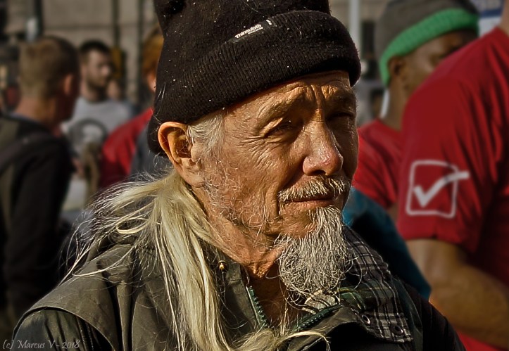 Portrætbillede af hjemløs – fotograferet ved hjemløsedagen – oktober 2018
